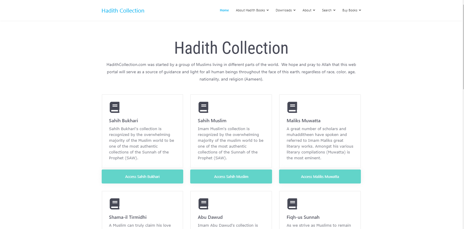 Hadith Collection একটি অনলাইন প্ল্যাটফর্ম যেখানে আপনি ভাল ভাল হাদিসের বই পেতে পারেন। এখানে আপনি, সহীহ বুখারী, সহীহ মুসলিম, আবু দাউদ সহ আরও অনেক হাদিসের বই পাবেন।