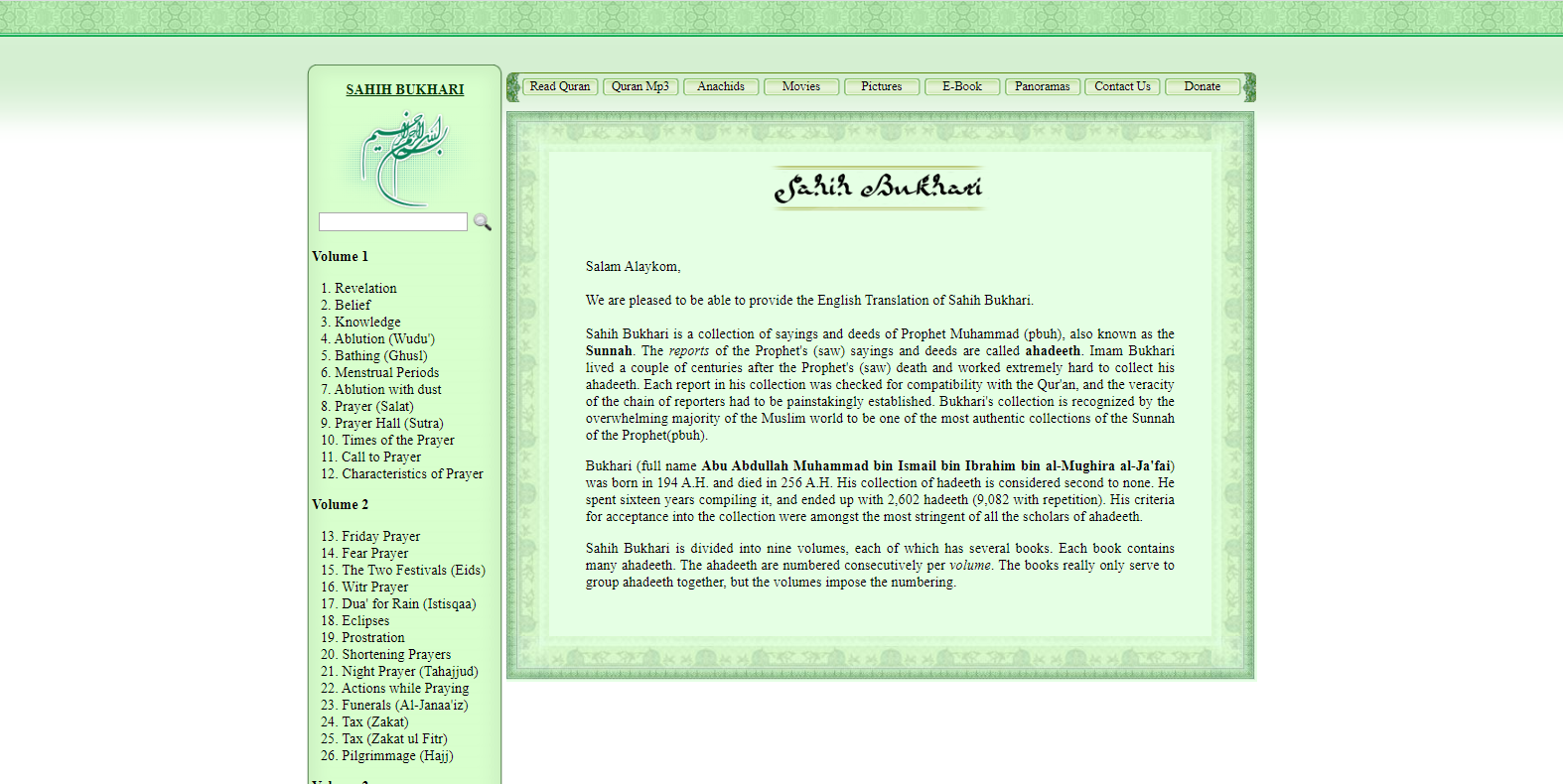 Sahih Bukhari ওয়েবসাইট টি তৈরি করা হয়েছে সহীহ বুখারী শরিফের আলোকে। এছাড়াও এর মাধ্যমে আপনি কোর আন শরিফ পড়তে পারবেন, শুনতে পারবেন, বিভিন্ন ইসলামিক বই পড়ার পাশাপাশি আরবি সিনেমাও দেখতে পারবেন।