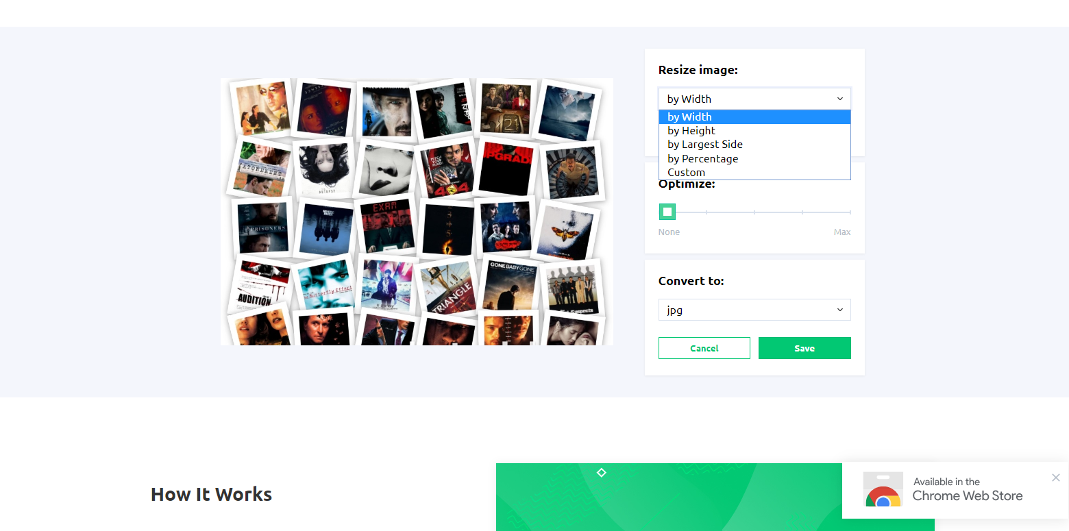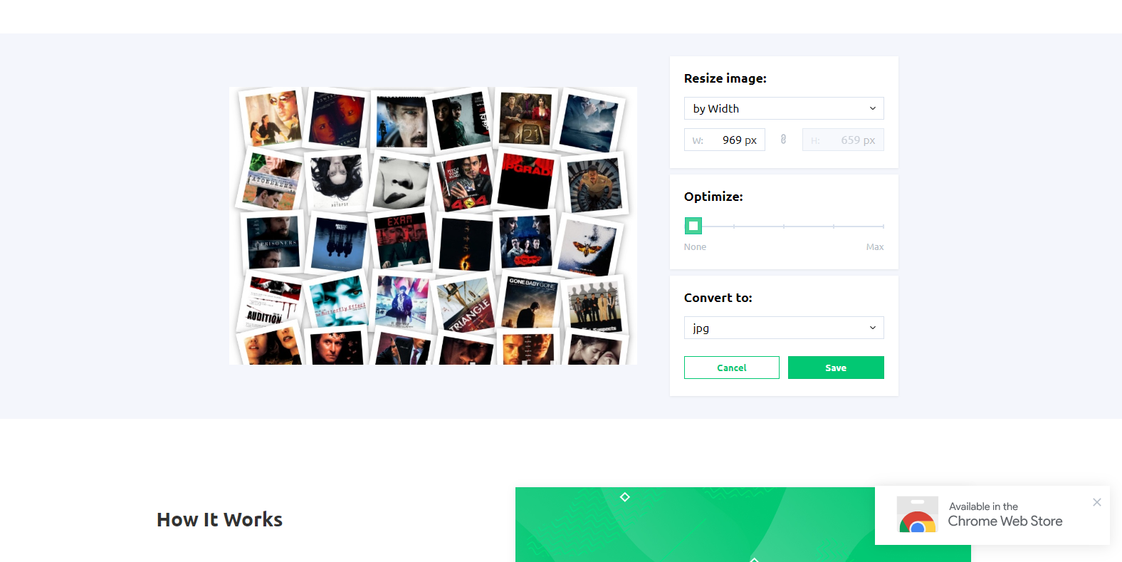আপনার ছবিটি ব্রাউজারে ড্রাগ এন্ড ড্রপ করার মাধ্যমেই করে ফেলতে পারবেন রিসাইজ এজন্য দিতে হবে না কোন সফটওয়্যার ইন্সটল। আপনি আপনার ইমেজকে, PNF ফরমেটেও সেভ করতে পারবেন।