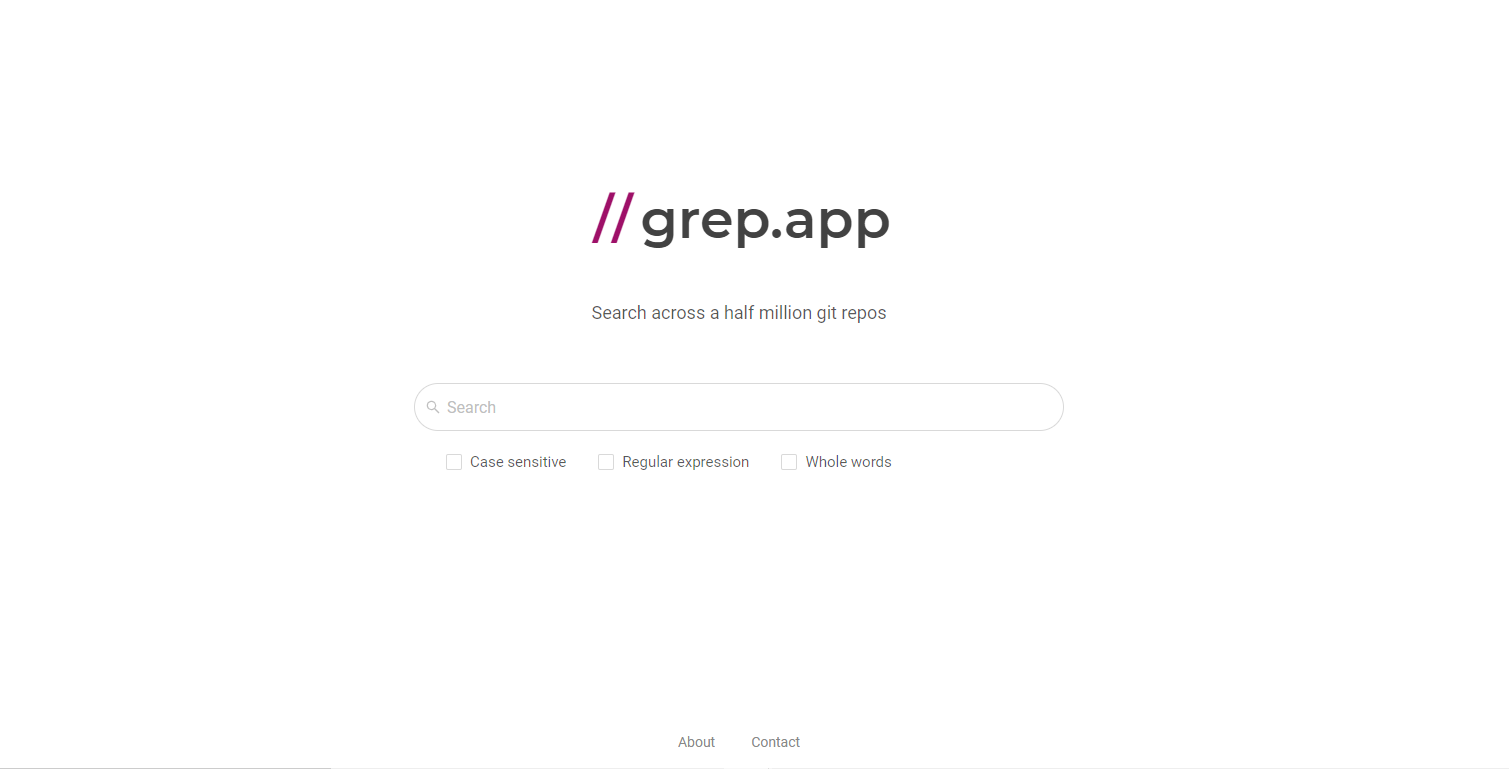 grep.app একটি ফ্রি ওয়েবসাইট যেখানে আপনি রেগুলার এক্সপ্রেশন Regular Expression দিয়ে GitHub থেকে কোড সার্চ করতে পারবেন। এটি একটি সিংগেল পেইজ ওয়েবসাইট যেখানে কি-ওয়ার্ড সার্চ করেও আপনার কোড খুঁজে পেতে পারেন।