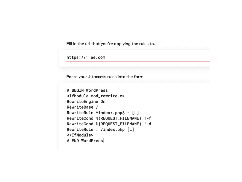 প্রথমে htaccess tester এর অফিশিয়াল ওয়েবসাইটে চলে যান এবং আপনার ওয়েবসাইট বা URL এটি দিন তারপর আপনার নির্ধারিত.htaccess এর ভ্যালু গুলো পেস্ট করে দিন এবং Test এ ক্লিক করুন।