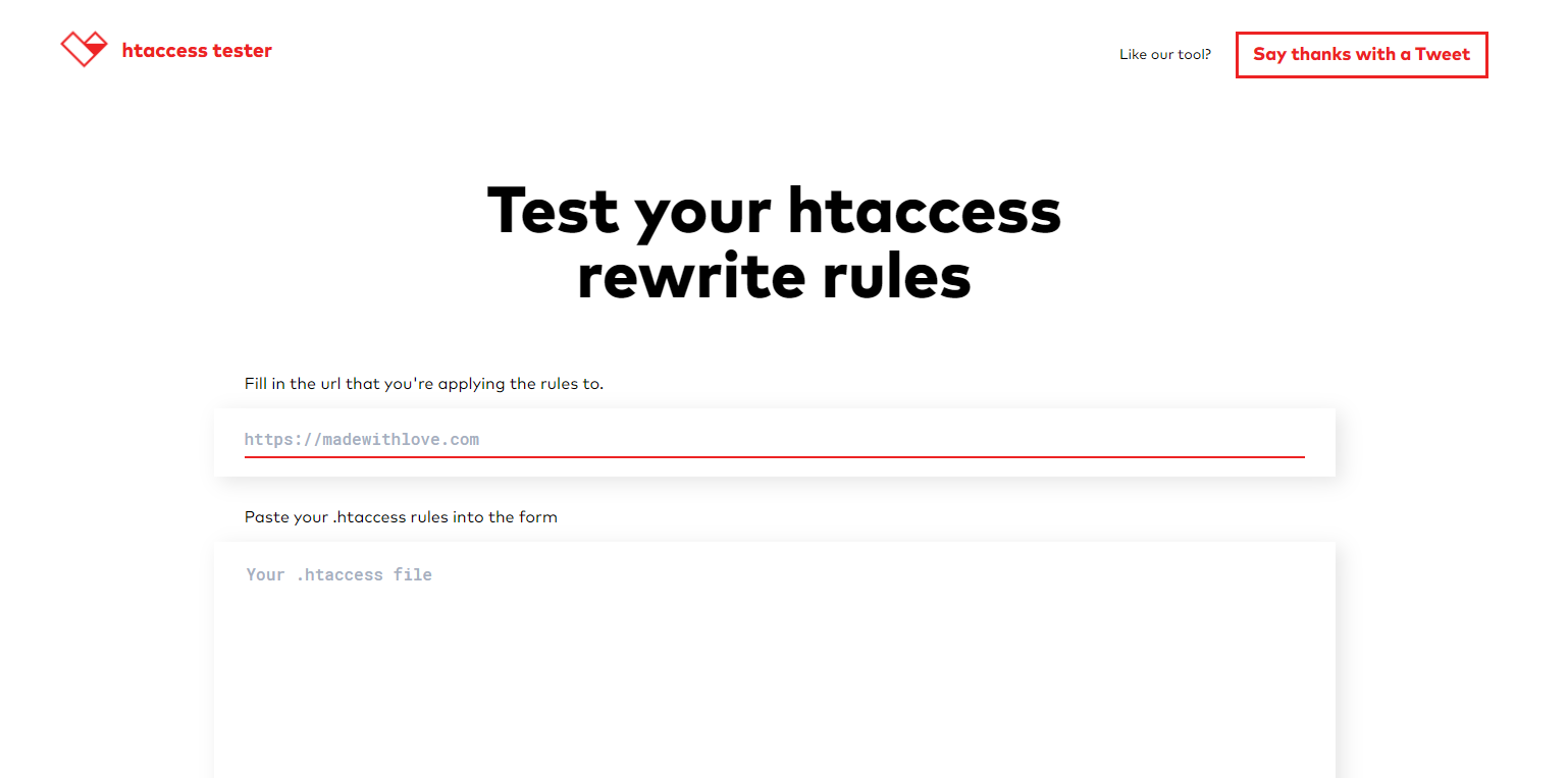 htaccess Tester একটি অনলাইন টুল যাতে খুব সহজ উপায়ে htaccess Syntax টেস্ট করা যায়। অনলাইন এই টুলটি প্রায় কয়েক বছর যাবত সফলতার সাথে ব্যবহার হয়ে আসছে এবং ডেভেলপাররা প্রতিনিয়ত নতুন নতুন ফিচার যুক্ত করছে।