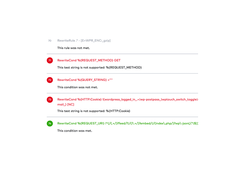 আগে বলেছি এই অনলাইন টুলটি ফাইল এনালাইসিস করতে পারে না তাই %{REQUEST_FILENAME} এই স্ট্রিং দিয়ে লেখা ভ্যালু গুলো রেড মার্ক দেখাতেই পারে। তবে এই টুলটি অনেক বড় ধরনের সমস্যা ডিটেক্ট করতে পারে যা আপনার ওয়েবসাইটকে যেকোনো Error থেকে বাঁচাতে সাহায্য করবে।
