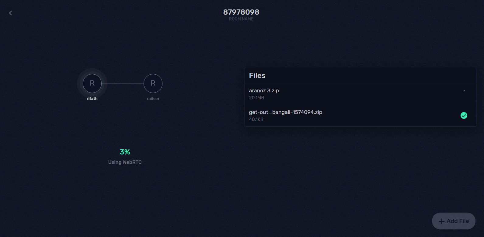 ফাইনালি এটি আপনার ফাইল ট্রান্সফার রুম। আপনি যাদেরকে লিংক পাঠাবেন সবাই এই রুমে জয়েন করতে পারবে এবং ফাইল শেয়ার করতে পারবে।