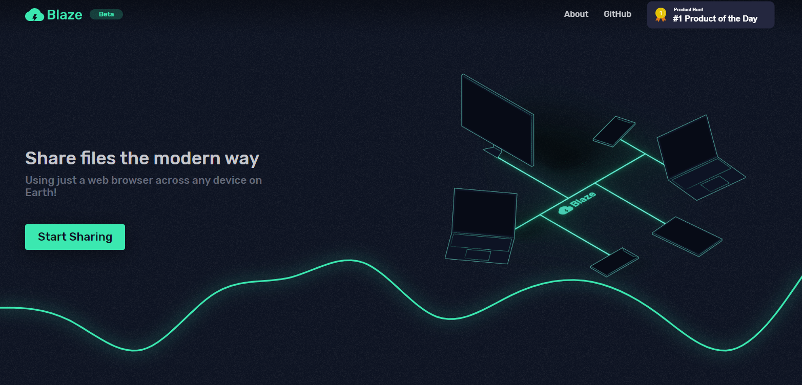 প্রথমে Blaze এর অফিশিয়াল ওয়েবসাইটে প্রবেশ করুন। নিচের মত একটি ইন্টারফেস দেখতে পাবেন, Start Sharing এ ক্লিক করুন।