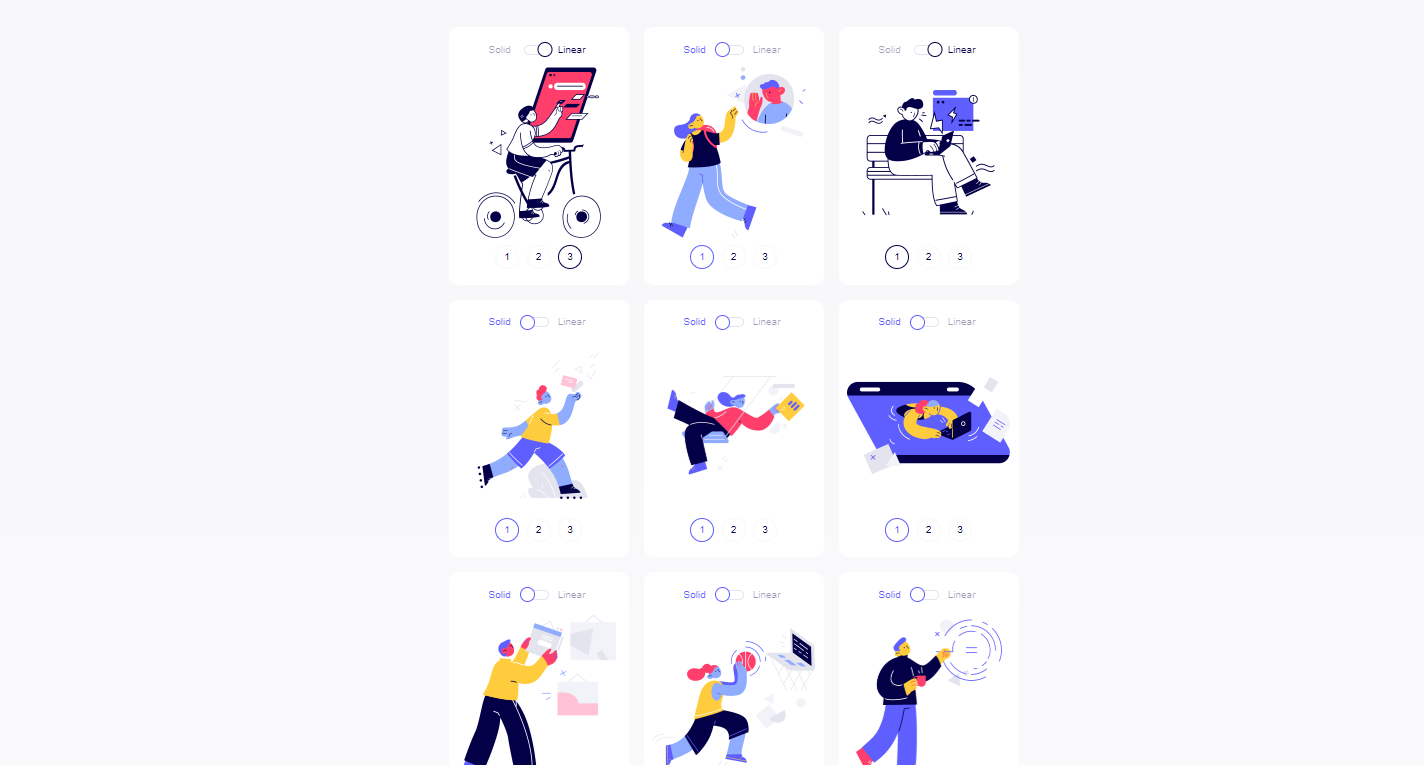 ফ্রি ভার্সনে আপনি.Png ফরমেটে ১০৮ টি Illustration ২ স্টাইলে ডাউনলোড করতে পারবেন। নিচে আপনি প্রিমিয়াম প্যাকেজ গুলো দেখতে পাচ্ছেন। ফ্রিতে ডাউনলোড করতে চাইলে, Download for free তে ক্লিক করুন।