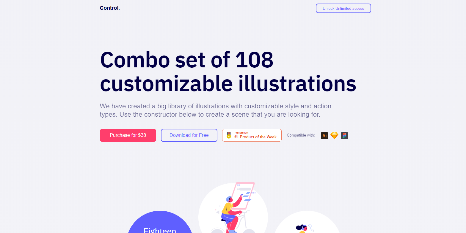 Control একটি অনলাইন টুল যেখানে আপনি কাস্টমাইজড প্যাটার্ন পাবেন। এখানে আপনি ১৮ টি ক্যারেক্টার পাবেন এবং প্রতিটির থাকবে ৩ টি করে আলাদা সিন এবং ২ টি ভিন্ন ভিন্ন স্টাইল। ক্যারেক্টার গুলো প্রায়ই সকল বিষয়ের উপরেই বানানো তাই এগুলো যেকোনো ডিজাইনেই ব্যবহার করতে পারবেন। Control ওয়েবসাইট মূলত daily life, work, transportation, sports এবং leisure এর মত বিষয় গুলোর উপরে Illustration রেখেছে।