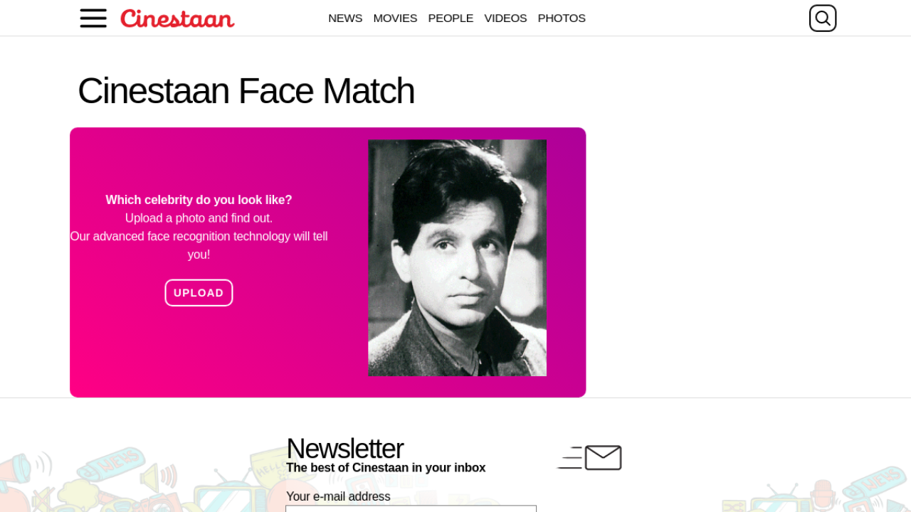 Cinestaan বিশেষ করে বলিউডের তারকাদের সাথে আপনার মিল খুঁজে বের করতে পারবেন। এখানে আপনি ছবি আপলোড করুন এবং চেহারার মিল বের করুন।