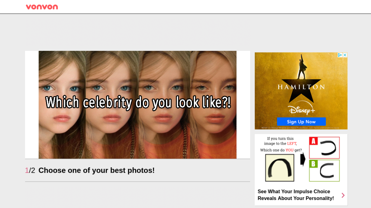Vonvon একটি ফ্রি এবং সিম্পল ওয়েবসাইট, যেখানে আপনি সহজেই জানতে পারবেন কোন সেলেব্রিটির চেহারা আপনার মত দেখতে।
