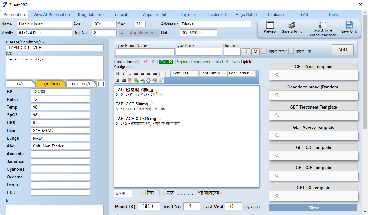 সরাসরি সাদা কাগজ বা ছাপানো প্রেসক্রিপশনের উপর প্রিন্ট করা যাবে।