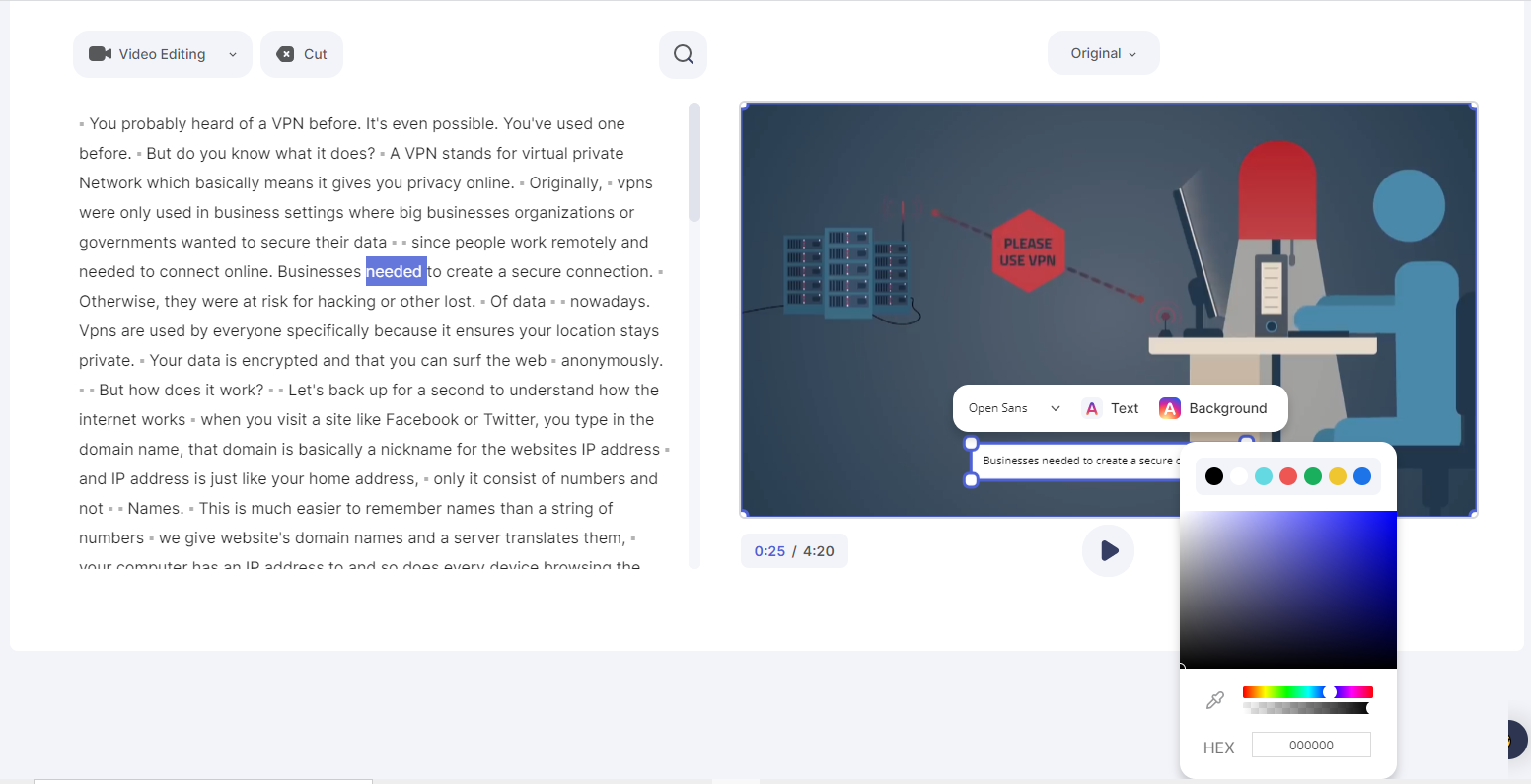 আমি একটি ভিডিও আপলোড করলাম। খেয়াল করুন আপনি চাইলে বাম পাশ থেকে আপনার টেক্সট প্রয়োজনমত এডিট করতে পারবেন।
