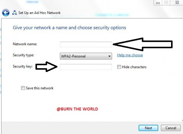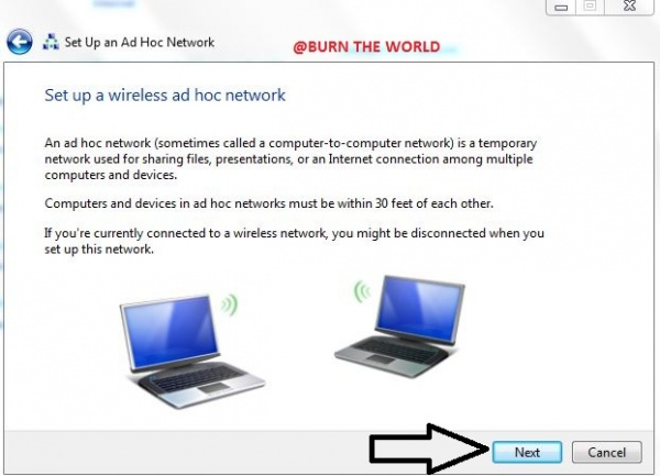 Connection or Network” তারপর “Set Up a Wireless Ad Hoc