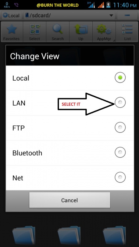 এখন বাম পাশের কোনাতে দেখুন Local লিখা একটি অপশন আছে। সেখানে ক্লিক করে Lan সিলেক্ট করলে নতুন একটি window open হবে।