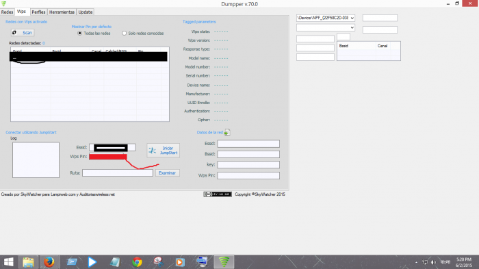 wps সিলেক্ট করে সেখান থেকে স্কান করবেন। তাহলে আপনার আশেপাশের সকল ওয়াইফাই নেটওয়ার্ক সেখানে শো করবে। এরপর আপনি যে নেটওয়ার্ক টা হ্যাক করতে চান ঐটায় ক্লিক করুন তাহলে নিচের লাল চিহ্ন দেওয়া ঘরে wps pin নামে একটা পিন পাবেন ঐটা কপি করে নিন। এবার প্রোগ্রাম বন্ধ করে jumpstart ওপেন করুন।