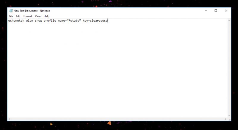 echonetsh wlan show profile name=“INSERT_SSID_HERE” key=clearpause
