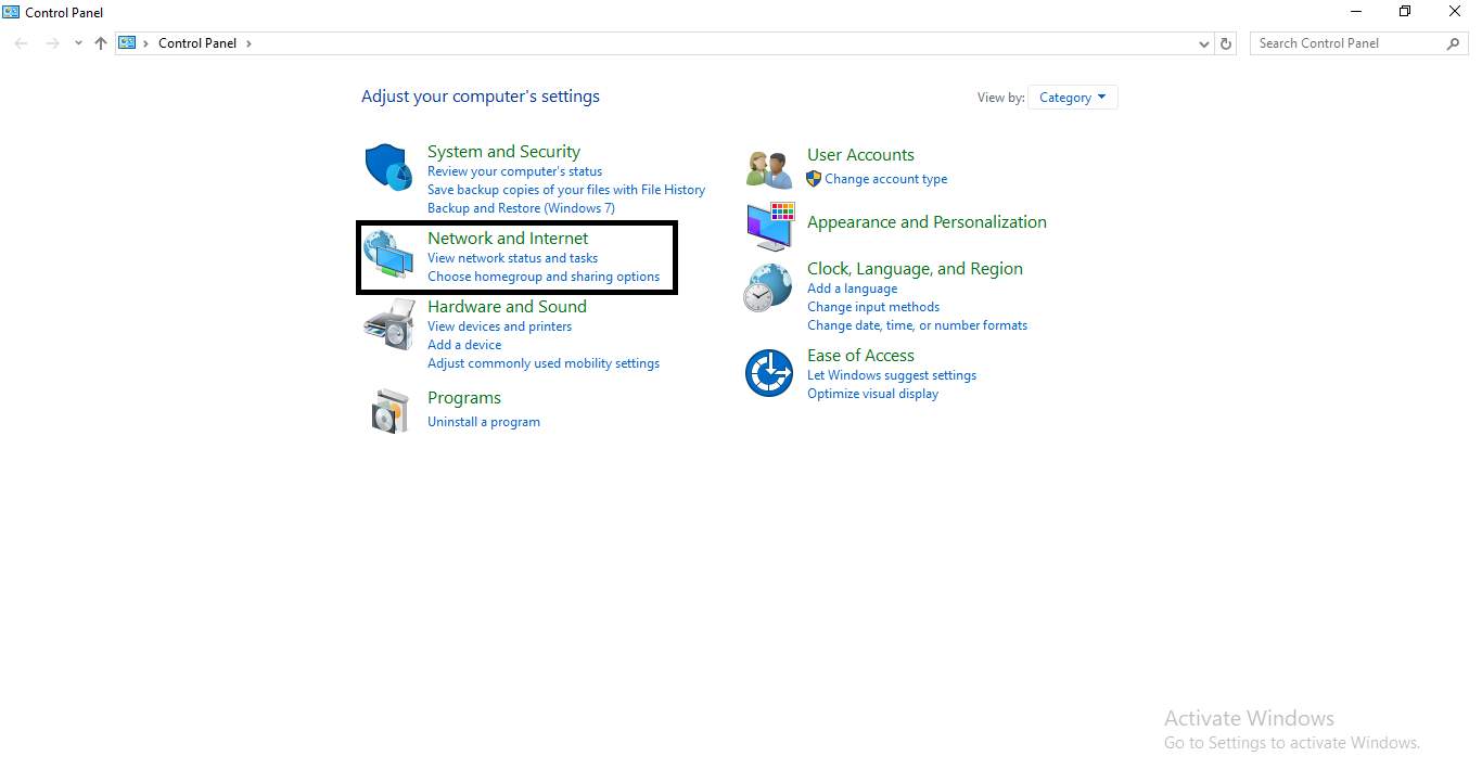 এখানে আসার পর আপনি বিভিন্ন অফশন দেখতে পাবেন। সেখান থেকে Network and Internet অপশনে ক্লিক করে প্রবেশ করুন।