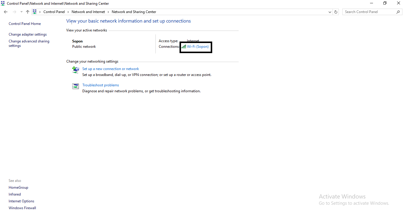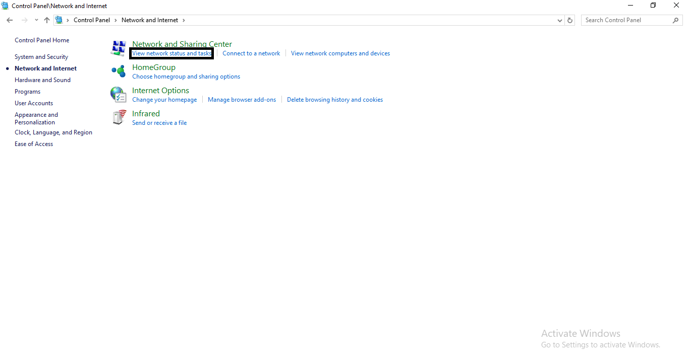 তারপর আরো কিছু অপশন দেখতে পাবেন। দেখতে পাবেন Network and Sharing Center এর নিচে লেখা রয়েছে View Network and status task এই অপশনে ক্লিক করুন। তাহলে নিচের মতো একটি পেজ দেখতে পাবেন।