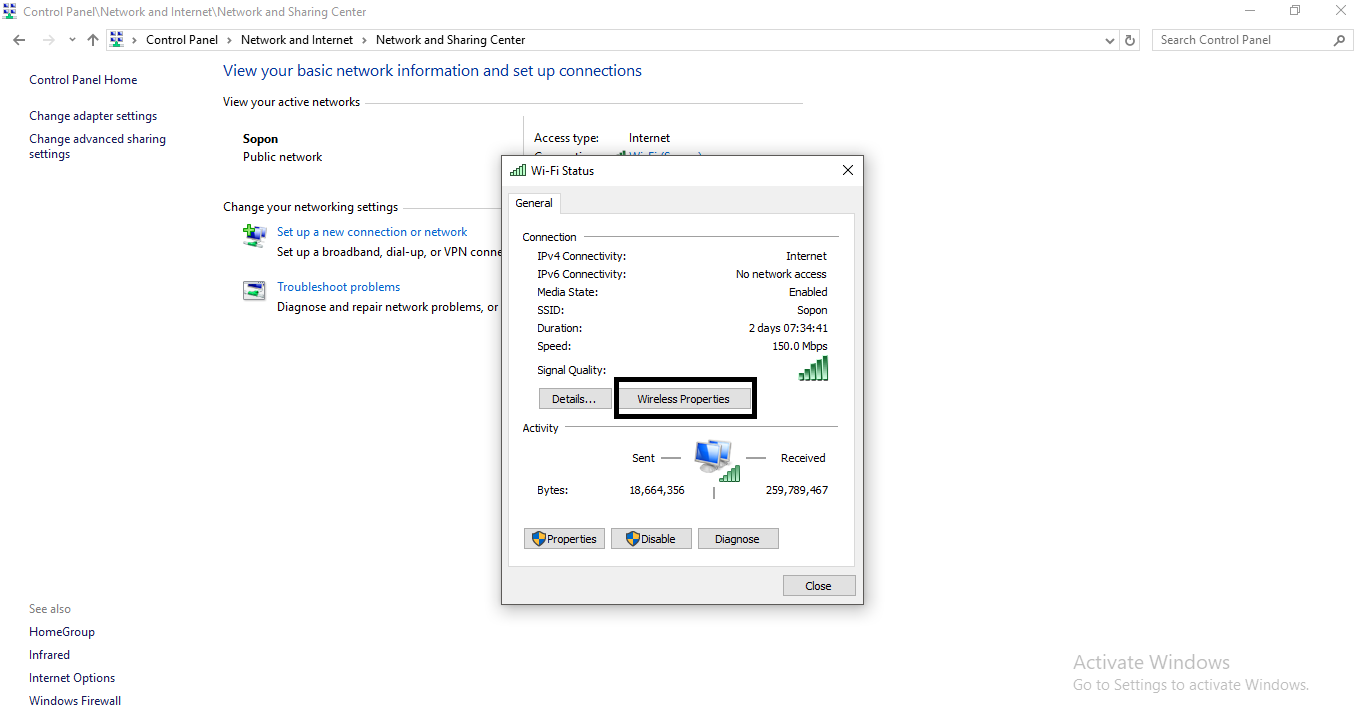 এখান থেকে Wireless Properties নামে একটি বাটন দেখতে পাবেন। সেখানে একটা ক্লিক করবেন। তাহলে আরো একটি Popup Menu অপেন হবে।