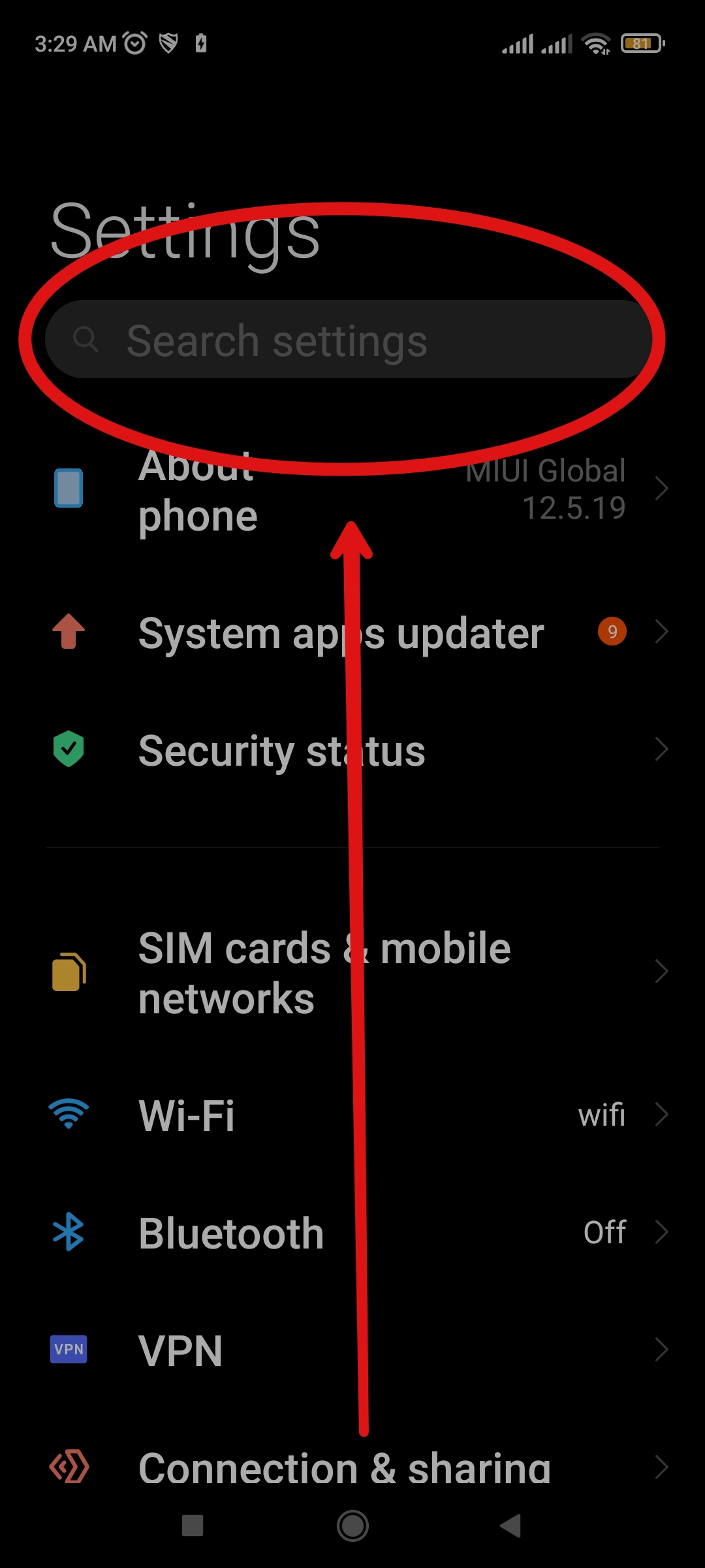 প্রথমে আপনার ফোনের সেটিং যান। যেয়ে সার্চ অপশন এ ক্লিক করুন।