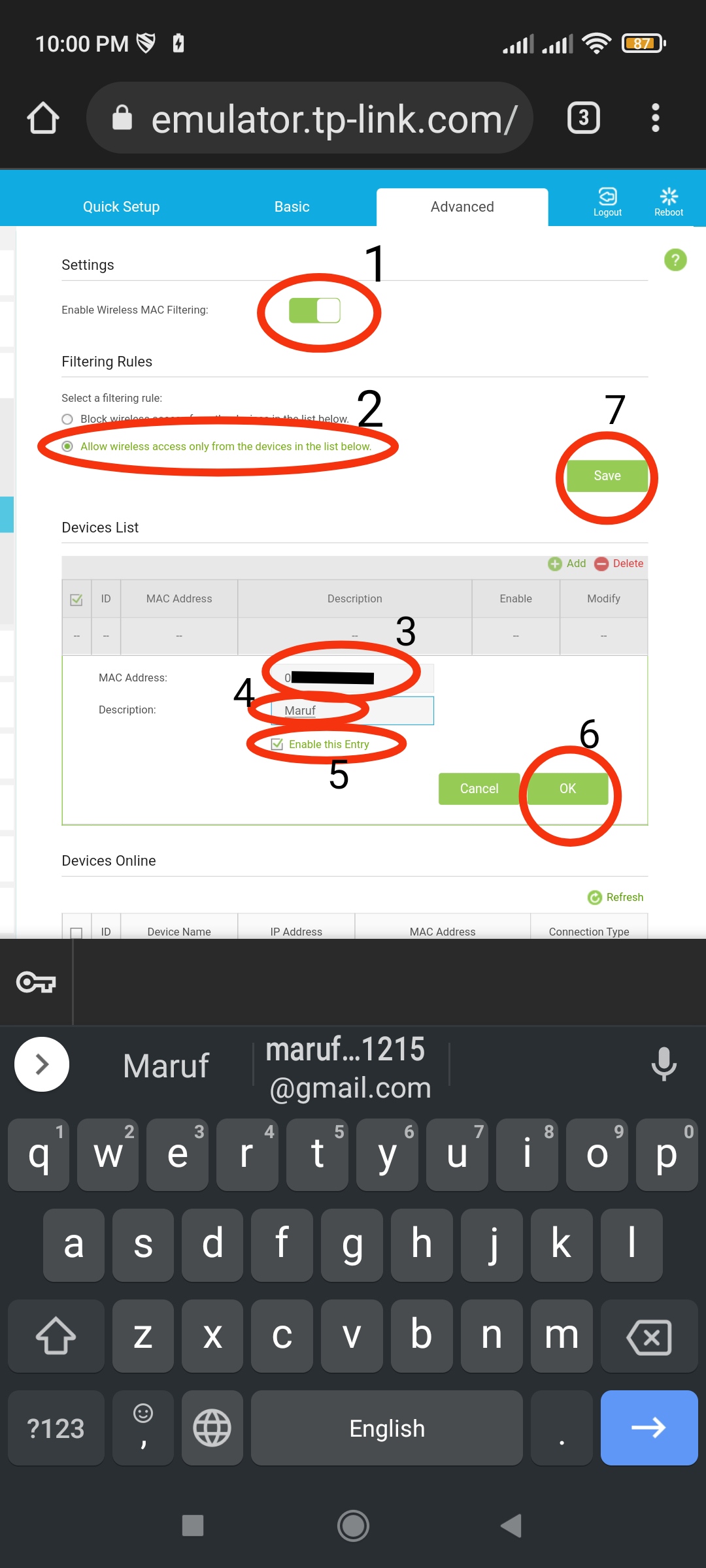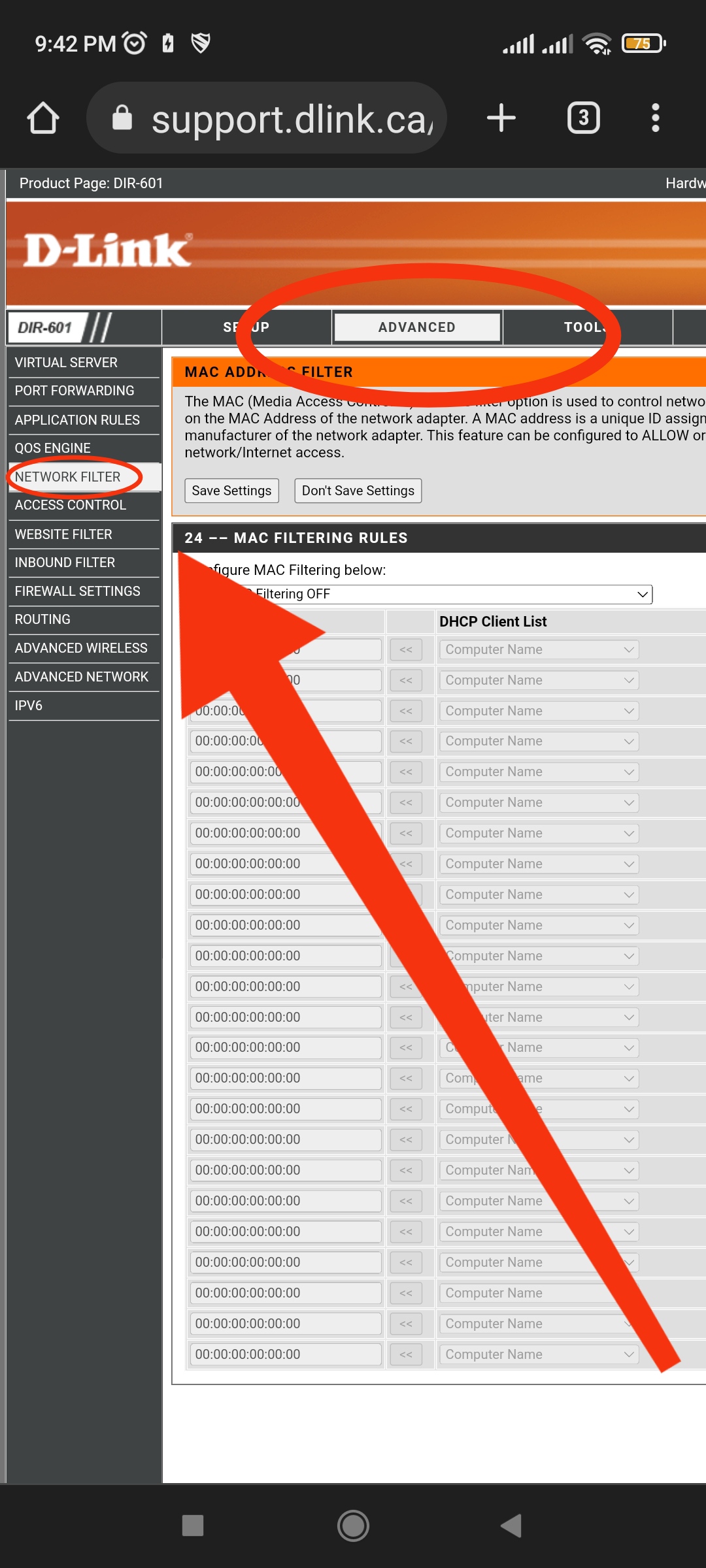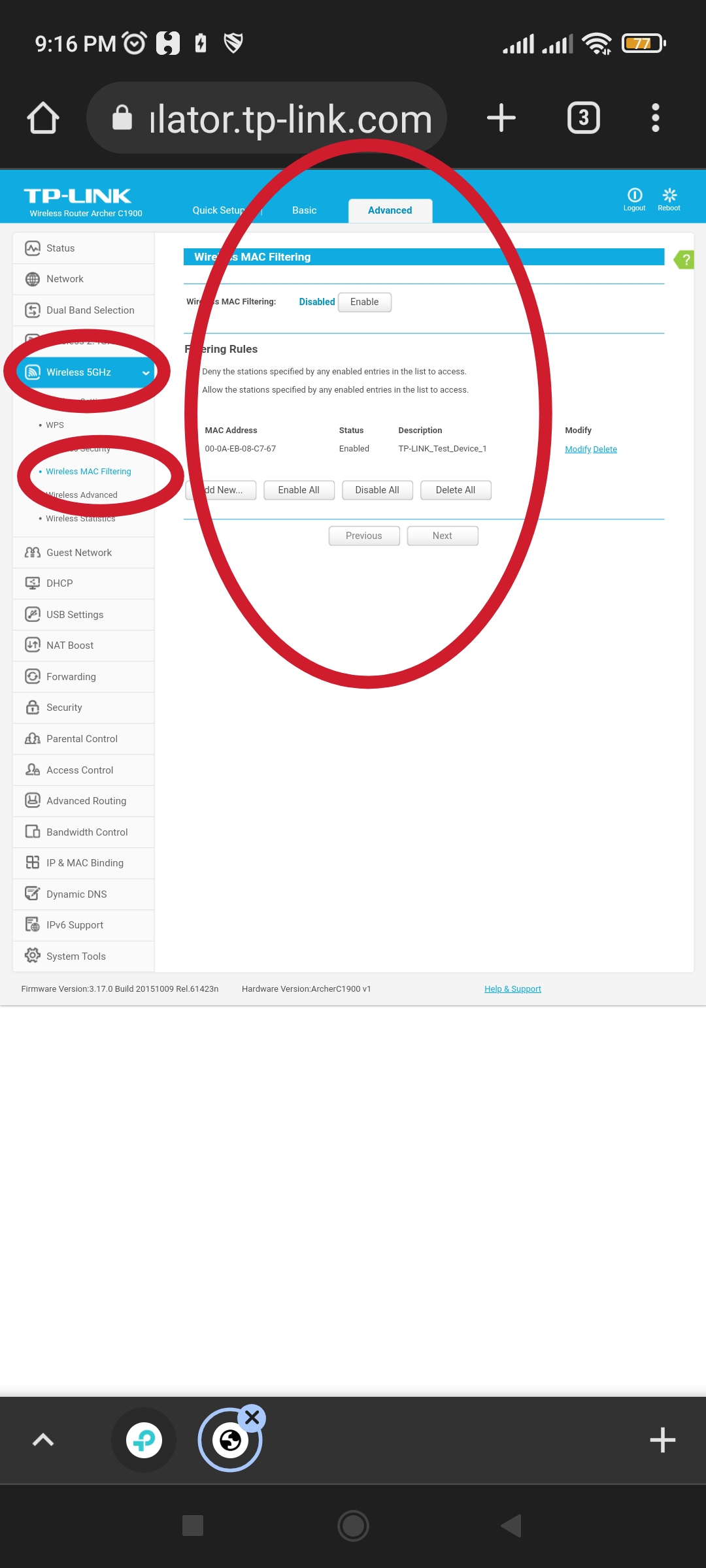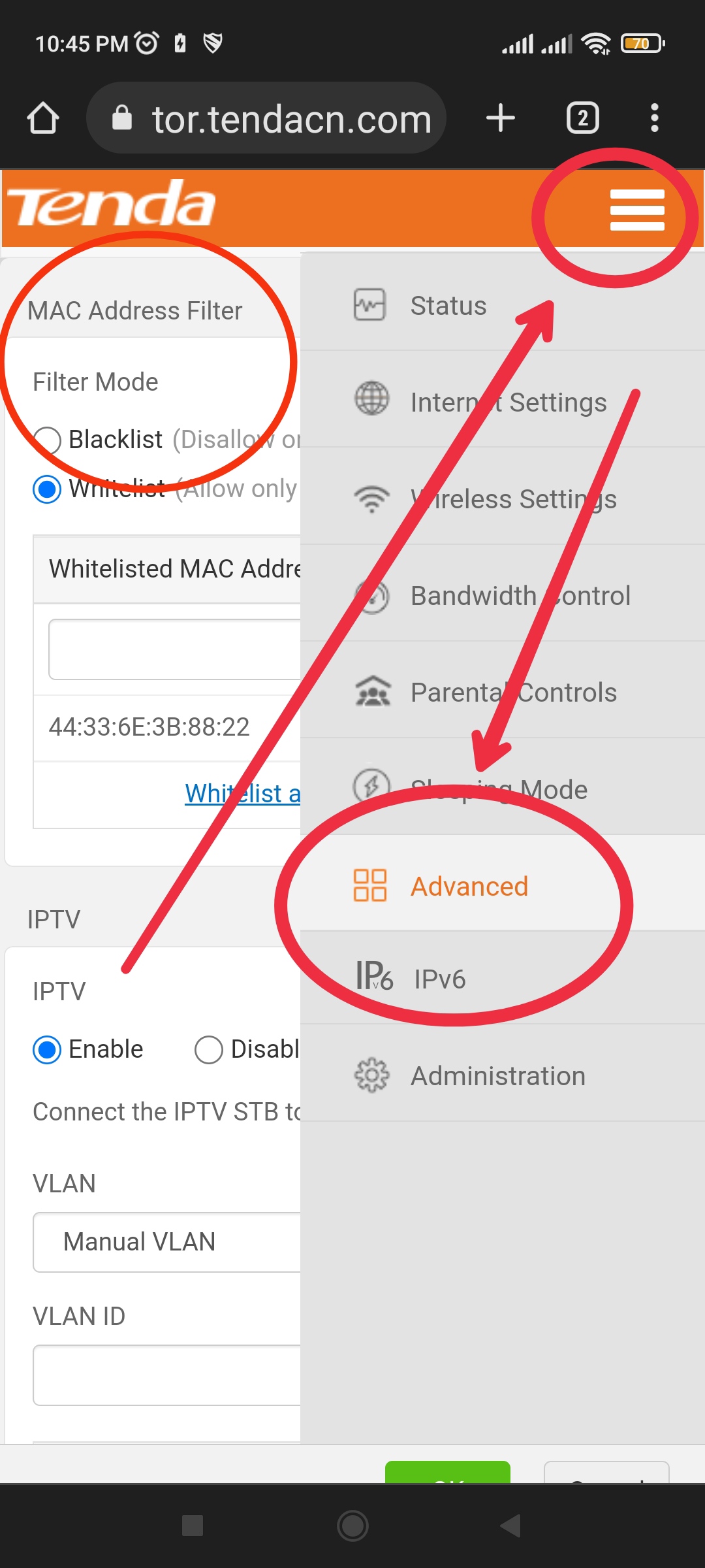 প্রথমে 3 ডট এ ক্লিক করুন। এরপর Advanced এ ক্লিক করলে Wireless Mac Filter অপশন টি দেখতে পাবেন।