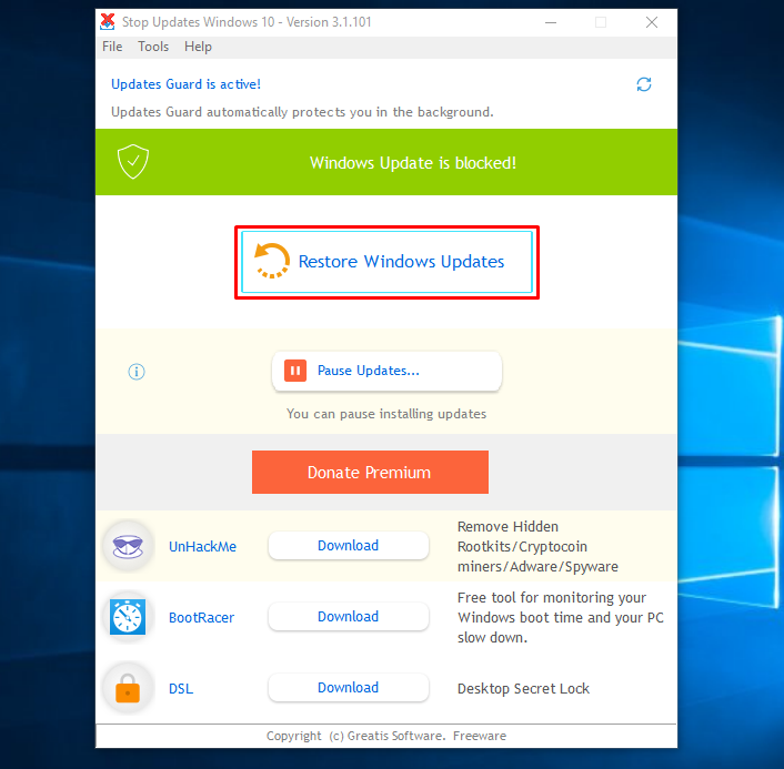 ভবিষ্যতে, আপনি যদি উইন্ডোজ এর অটোআপডেট পুনরায় এনাবল করতে চান, তাহলে StopUpdates10 সফটওয়্যার ওপেন করুন এবং "Restore Windows Updates" বাটনে ক্লিক করলেই আপনার অপারেটিং সিস্টেমে অটো আপডেট এনাবল হয়ে যাবে মুহুর্তেই।