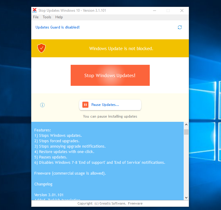 আর আপনি যদি উইন্ডোজ অটোম্যাটিক আপডেট পুরোপুরি বন্ধ করতে চান তবে " Stop Windows Updates" বাটনে ক্লিক করুন।