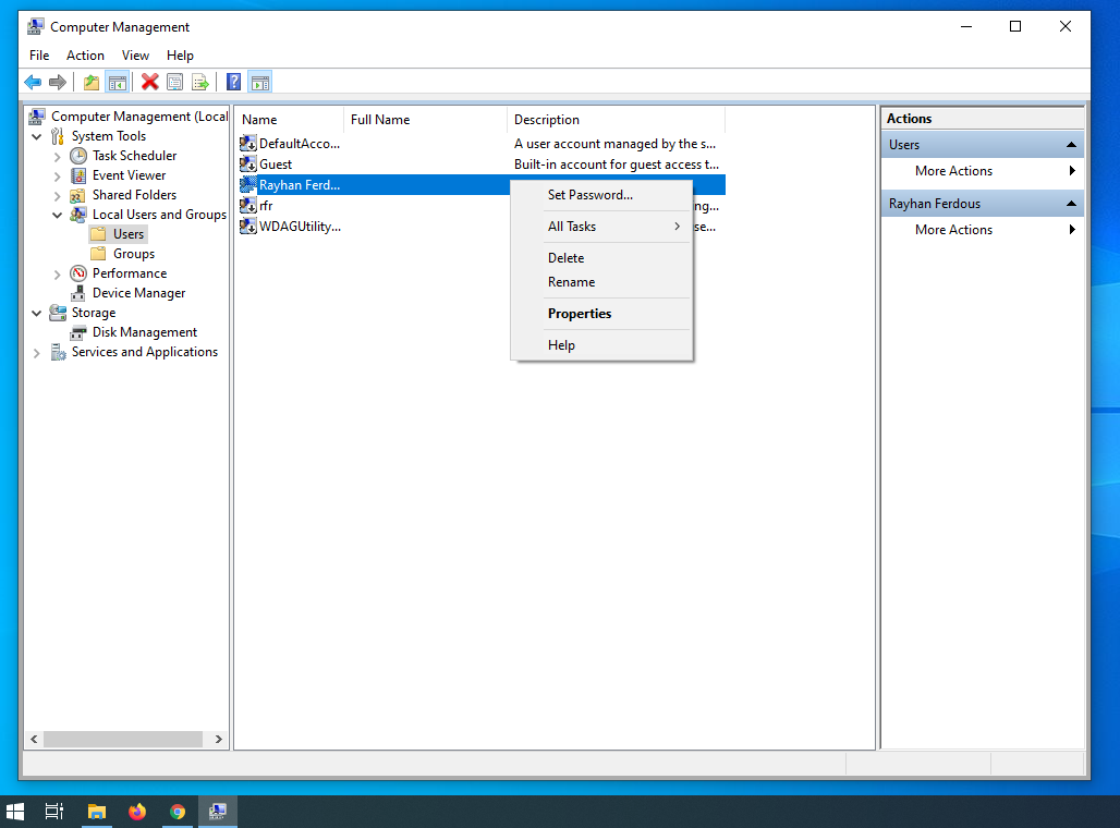 এখন কম্পিউটার ম্যানেজমেন্ট উইন্ডো ওপেন হবে। এখান থেকে, “Local Users and Groups” মেনুটি এক্সপান্ড করুন এবং “Users” ফোল্ডারটি ওপেন করুন। এখন আপনার ইউজার নেম-এ রাইট ক্লিক করুন এবং “Properties” অপশনটি সিলেক্ট করুন।