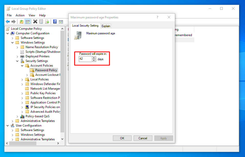 এখন, “Maximum password age” এর উপর ডাবল ক্লিক করুন এবং আপনার পছন্দ অনুযায়ী কত দিন রাখতে চান তা ইনপুট করুন, এখন “OK” বাটনে ক্লিক করুন, ব্যাস উইন্ডোজ ১০ এর পাসওয়ার্ড expire সমস্যার সমাধান হয়ে গেল।