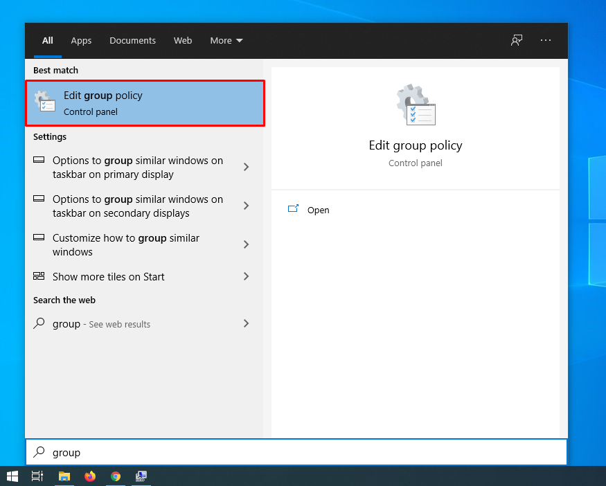 তবে আপনি যদি চান এই ফিচারটি এনাবেল থাকুক কিন্তু উইন্ডোজ ১০ এর পাসওয়ার্ড এর expire ডেট বাড়িয়ে নিতে চান তাহলে নিচের নিয়মে তাও করতে পারবেন। এখন উইন্ডোজ বাটন প্রেস করুন এবং সার্চ বারে “group” লিখে সার্চ করুন। এখন, “Edit Group Policy” অপশনটি ওপেন করুন।