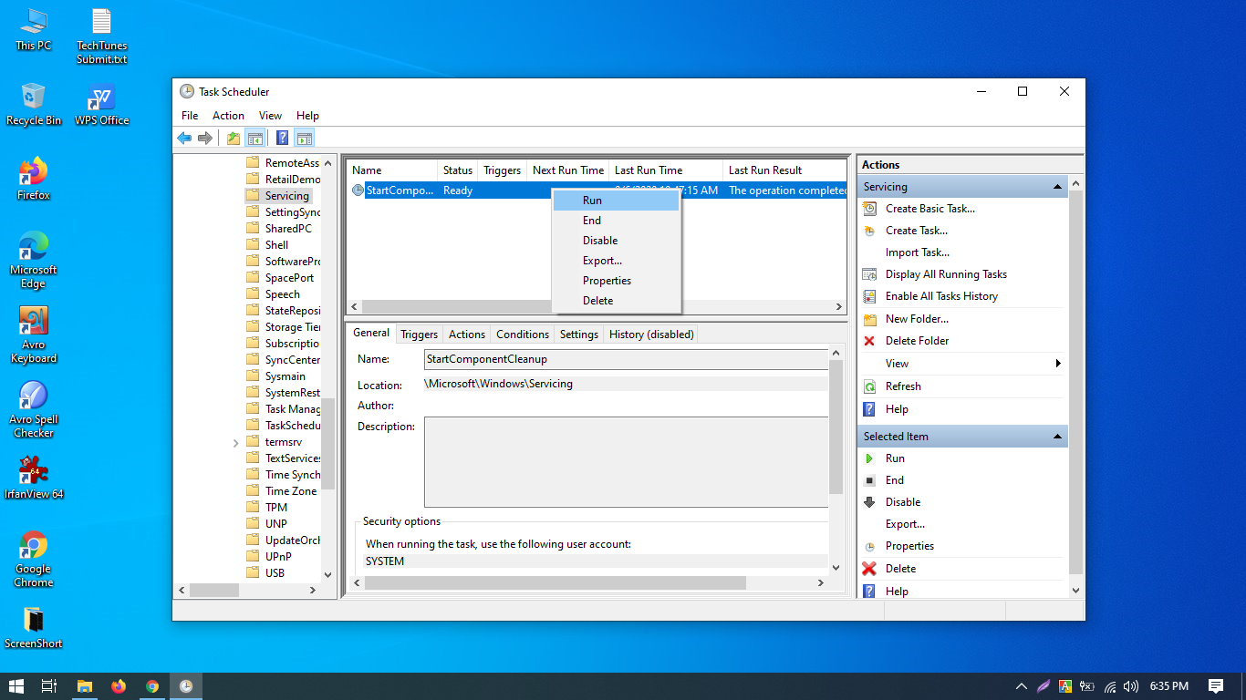 উইন্ডোজ ৮/৮.১ এর সিস্টেমের মধ্যে অব্যবহৃত থাকা কম্পোনেন্টগুলো অটোমেটিক্যালি রিমুভ করার জন্য বিল্ট ইন ফিচার রয়েছে। এই ফিচারটি ব্যবহার করতে প্রথমে Task Scheduler যান এবং Microsoft > Windows > Servicing অপশনে নেভিগেট করুন। তারপরে, Servicing ফোল্ডারে থাকা আইটেমে রাইট ক্লিক করুন এবং রান অপশন সিলেক্ট করুন।