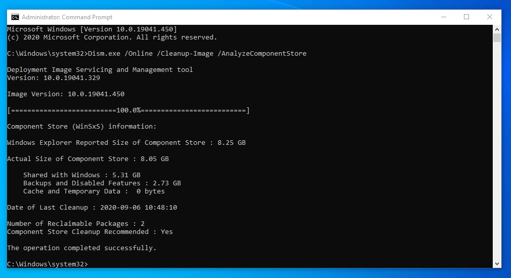 Dism.exe /Online /Cleanup-Image /AnalyzeComponentStore
