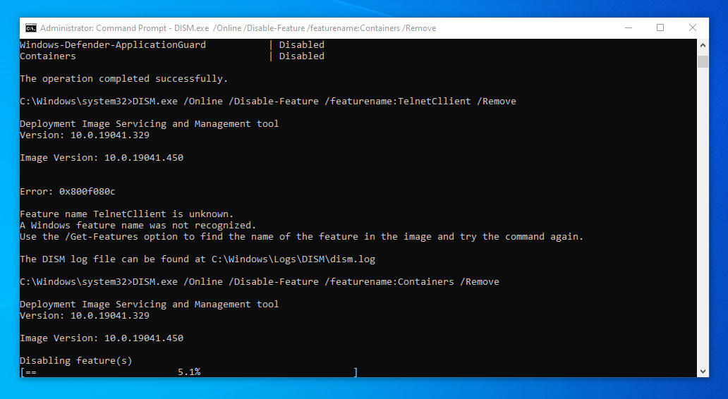 DISM.exe /Online /Disable-Feature /featurename:NAME /Remove