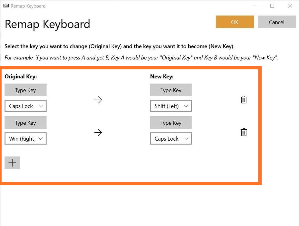 আপনার কী-বোর্ডের যে বাটন বা বাটনগুলো নষ্ট সেগুলো ডানপাশের “New Key” এর আন্ডারে রাখুন। এবং যে বাটনগুলো দ্বারা আপনার নস্ট বাটনকে রিপ্লেস করতে চাচ্ছেন সেগুলো “Original Key” এর আন্ডারে রাখুন। যেমনঃ- আপনার “Shift” বাটন টি যদি নষ্ট থাকে, এবং আপনি যদি চান “Caps Lock” বাটন চাপলে “Shift” বাটনের কাজ করবে তাহলে নিচের স্ক্রীনশটটি দেখুন।
