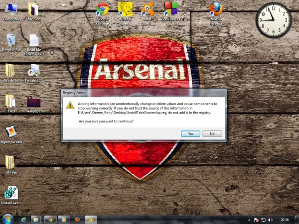 এখন InstallTakeOwnership.reg ফাইলটিতে ডাবলক্লিক করে ইনস্টল করুন নিচের ছবিটির মতো করে