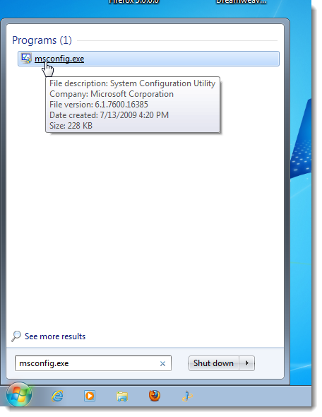 MSConfig চালু করার জন্য প্রথমেই আমাদের স্টার্ট মেনুতে যেতে হবে দেন টাইপ করতে হবে “msconfig.exe” (কোটেসান ছাড়া) সার্চ বক্সে যখন আপনি msconfig.exe দেখবেন তখন ওইটায় ক্লিক করবেন