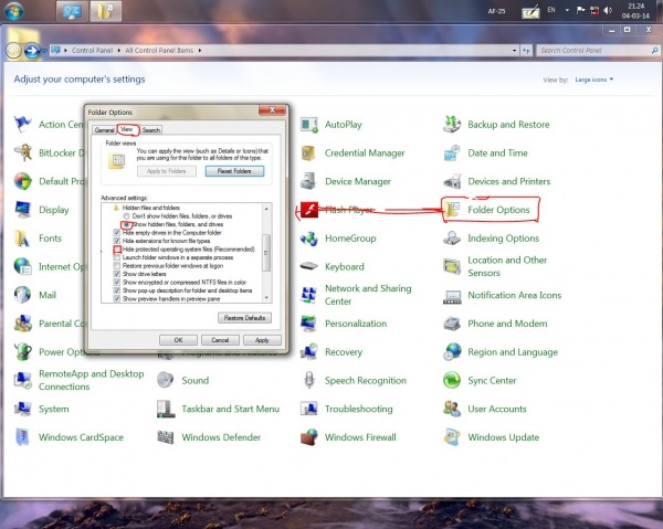 ব্যস হয়ে গেল! এখন প্রথম ধাপ অনুসরনে Hide protected operating system files এ টিক দিয়ে দিন যদি অনেক উইন্ডোজের নিজস্ব ফাইল দেখতে না চান।
