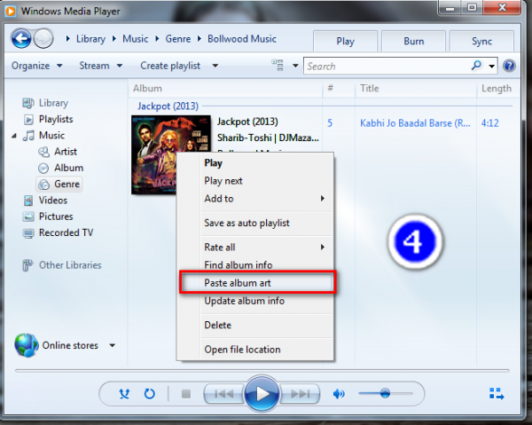 5. এবার সেই গানটার উপর Right click করে Paste album art এ click করুন ।কাজ শেষ ।