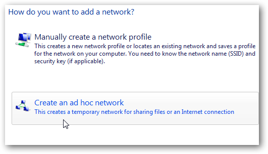 -তারপর আরেকটি ডায়লগ বক্সে দুটি অপশন Manually create a network profile এবং Create an ad hoc network দেখাবে। এর মধ্য থেকে Create an ad hoc network সিলেক্ট করতে হবে।