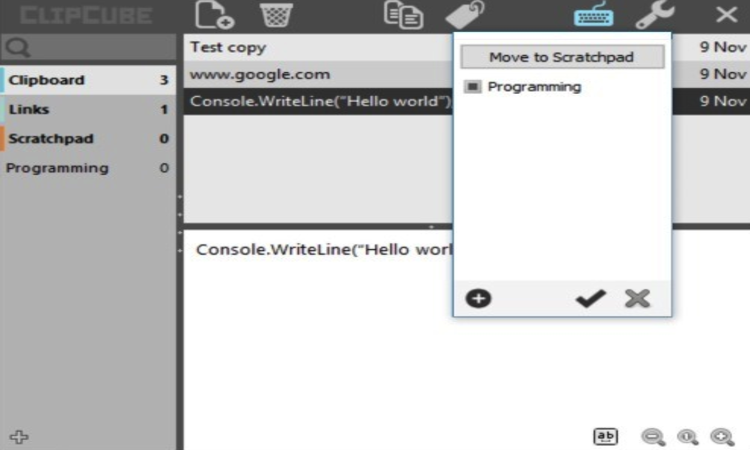 ক্লিপ কিউব সফটওয়্যার টি মূলত প্রোগ্রামিং এবং লেখা সাপোর্ট ভিত্তিক সফটওয়্যার। এই সফটওয়ার টিকে আরো আকর্ষনীয় করেছে কারণ এটায় আপনি আলাদা করে আপনার কপিকৃত হিস্টোরিকে বিভিন্ন ট্যাগ দিতে পারবেন তাই।