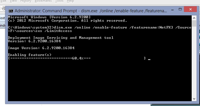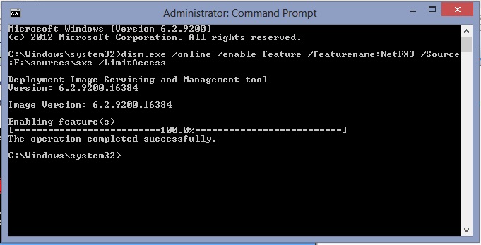 dism.exe /online /enable-feature /featurename:NetFx3 /All /Source:F:\sources\sxs /LimitAccess
