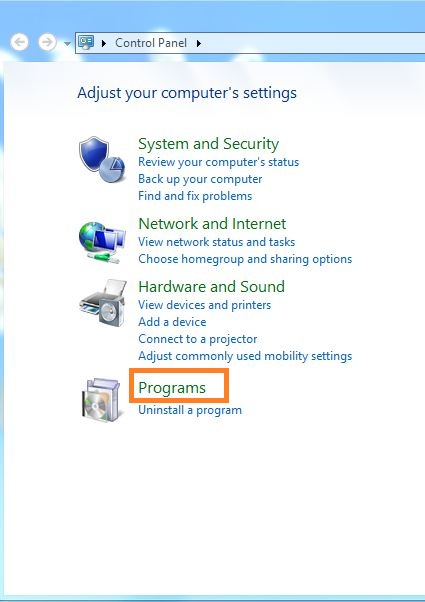 * প্রথমে Start থেকে Control Panel এ ক্লিক করে Programs এ ক্লিক করুন নীচের চিত্রে দেখুন ।