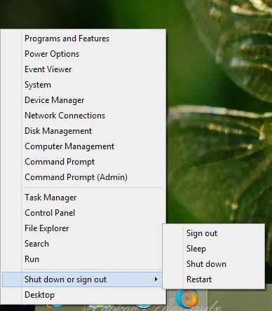 Hibernate Option টি Enable করতে প্রথমে Desktop এর Left-Bottom কোণে অর্থাৎ Start Menu তে কার্সর রেখে Right button ক্লিক করুন। অতপর Power Option -এ ক্লিক করুন