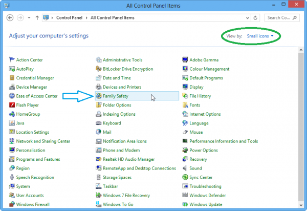 এবার Administrator user থেকে Control panel এ যান ও Family Safety তে ক্লিক করুন।