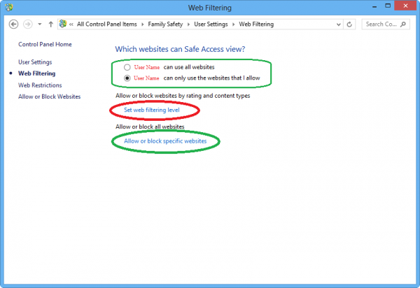 যদি সকল সাইট উন্মুক্ত রাখতে চান তবে উপরের রেডিও বাটন আর যদি নির্দিষ্ট কিছু সাইট উন্মুক্ত রাখতে চান তবে নিচের রেডিও বাটনে ক্লিক করুন। এখন set web filtering level এ ক্লিক করুন। এতে নিচের মত আরেকটি উইন্ডো আসবে।