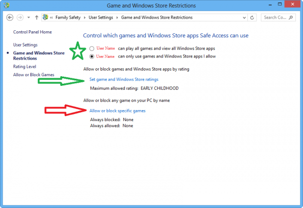 3. Game and Windows Store Restrictions: এই অপশন এর মাধ্যমে Windows store এর বিভিন্ন app এবং Game এর নিয়ন্ত্রন রাখতে পারবেন। নির্দিষ্ট রেটিং (যেমনঃ child, mature, adult rating) এর app ও game ব্যতীত অন্য সকল app ও game বন্ধ করে রাখা যাবে।