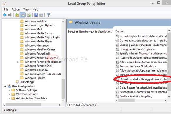 Windows Update এ যাওয়ার পর নিচের মত screen দেখতে পাবেন । এখানে No auto-restart with logged on users for scheduled automatic updates installations এ ক্লিক করুন ।
