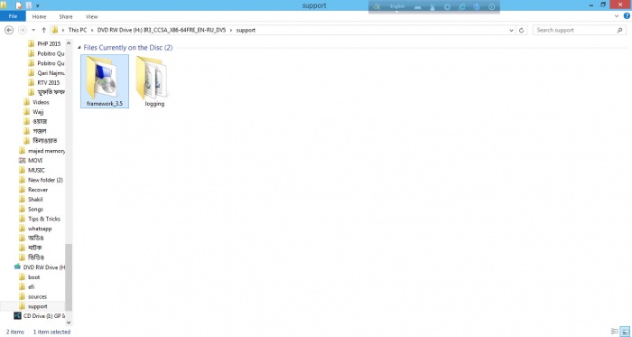 অবশেষে support ফোল্ডারটির ভিতর পেলাম framework_3.5 নামের একটি ফোল্ডার সেই সফ্টওয়ারটি ইনস্টল করে আমার ডট নেট ফর্মওয়ারটি ইনএবল করলাম এবং সফল ভাবে ইনস্টল করলাম বিজয় সহ আর সকল সফ্টওয়ার।