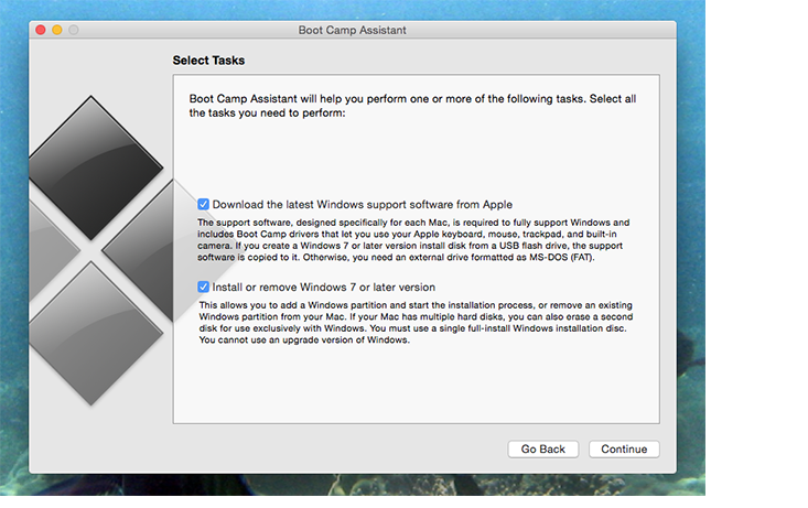 আপনি আপনার ইউএসবি ড্রাইভকে bootable করার অপশন পাবেন। এরপর কন্টিনিউ চাপুন এবং উইন্ডোজ স্টার্ট হবে।যদিও এটা ইনস্টল হতে ২বা ৩বার রিস্টার্ট নিতে পারে উইন্ডোজ পুরোপুরি ইন্সটল করতে। এরপর উইন্ডোজ রান হবে। তবে ওয়াফাই বা অন্যান্য কিছু জিনিস কাজ করবে না। এর জন্য কিছু ড্রাইভার প্রয়োজন হবে। আপনার ম্যাক কে রিবুট দেন অপারেটিং সিস্টেম x এ এবং the Boot Camp driver