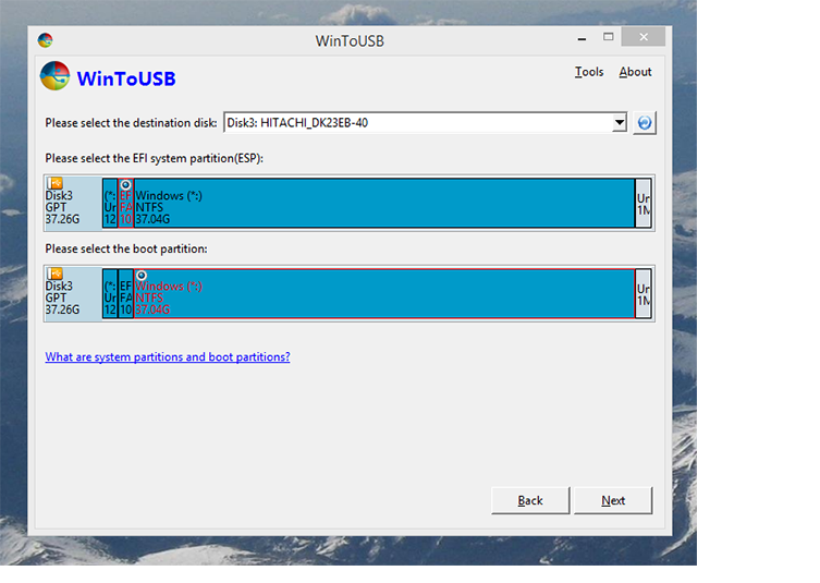 এবার আপনার এক্সটার্ণাল ড্রাইভ টি wintousb এর জন্য রেডি। তো WintoUSB ওপেন করুন। এবার আপনার উইন্ডোজ ৮ এর ডিস্ক বা Iso ফাইল দরকার যেটা আপনার usb drive এ নিবেন।এরপর বাকি দায়িত্ব তা boot এবং সিস্টেম পার্টিশন নিবে।
