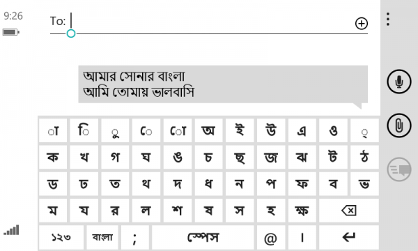 ৬. বাংলা কীবোর্ড – উইন্ডোজ ফোনের এই বিষয়টি আমার সবচেয়ে ভাল লেগেছে । উইন্ডোজ ফোন ৮.১ এ দেয়া হয়েছে অফিসিয়াল বাংলা কীবোর্ড যা সকল স্মার্টফোনের মাঝে প্রথম । উইন্ডোজ ফোনে তাই পৃথিবীর প্রায় সকল ভাষা উন্মুক্ত